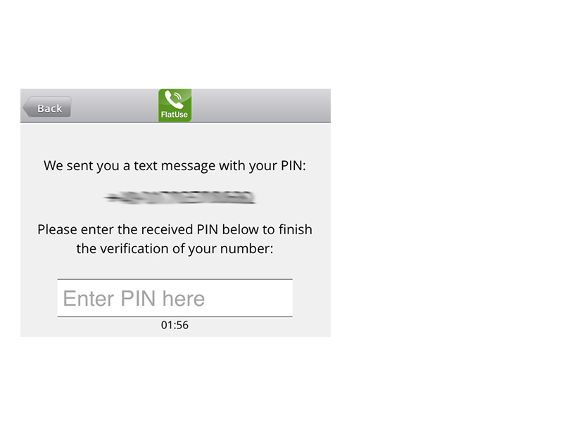 The FlatUse System will sent you an SMS to your registered phone number. With the pin-code you can finish your registration and use the pin for a future login as an password.
