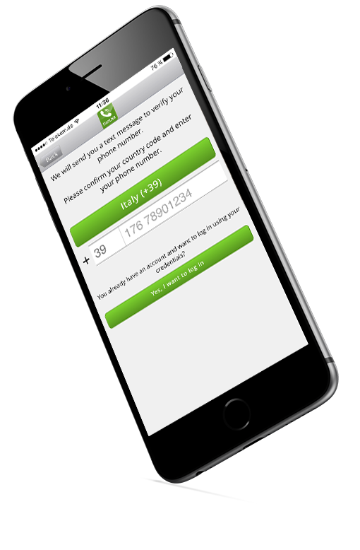 App Store Play StoreRegister with your local mobile phone number and get per sms an pin-code.